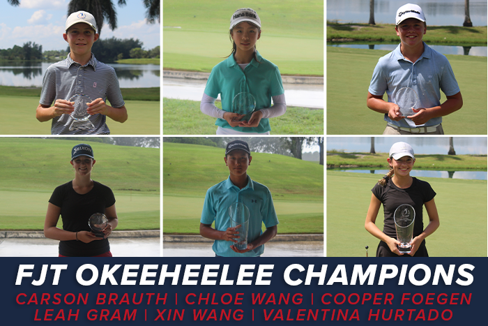 WEST PALM BEACH, Fla. – Six players took home Florida Junior Tour trophies on Sunday at Okeeheelee Golf Club, as the tournament was shortened to 18 holes due to weather. Xin Wang and Valentina Hurtado captured victories in the 13-15 division. Cooper Foegen and Leah Gram were victorious in the 11-12 division, while Carson Brauth and Chloe Wang earned a win in the 9-10 division.