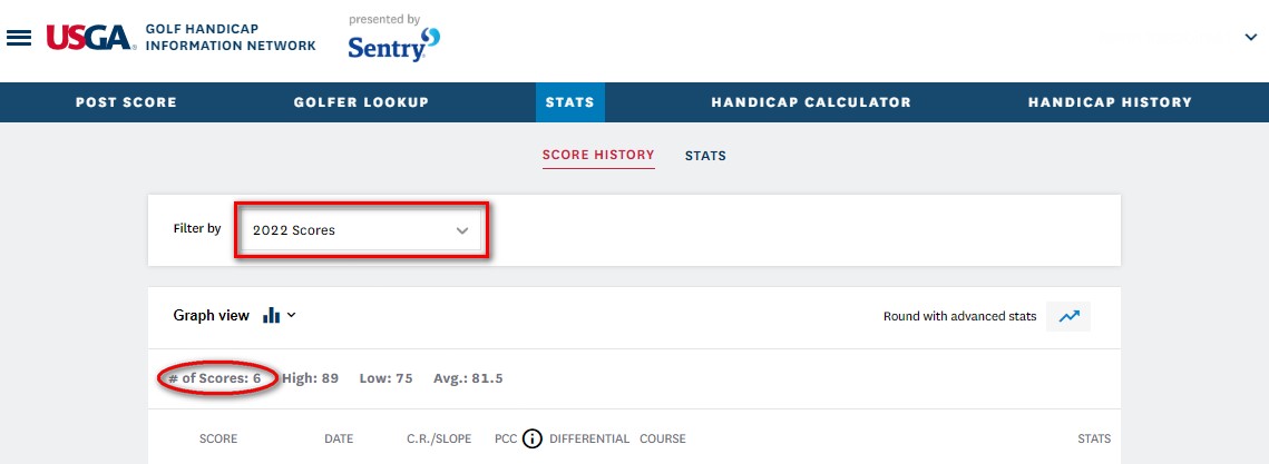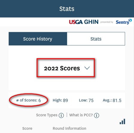 2. Then filter by 2022 Scores in the drop down menu. (You can also view 2021 and 2020 score under this same filter) You will then see the number of scores listed for the calendar year.